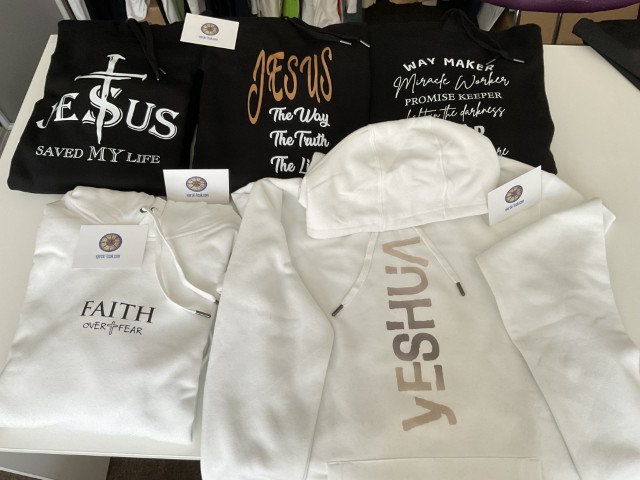 Većinom su crne ili bijele hudice, ali mogu biti i različite boje majica sa kapuljačom. Tiskani su motivi Duh Sveti, Holly Spirit, oblikovani simbol križa, anđeli, biblijske slike, ikona Isusa, sv. Josip itd.